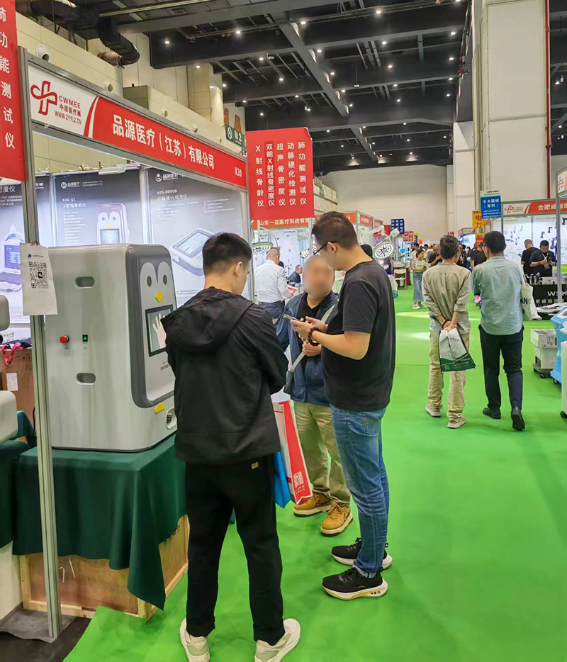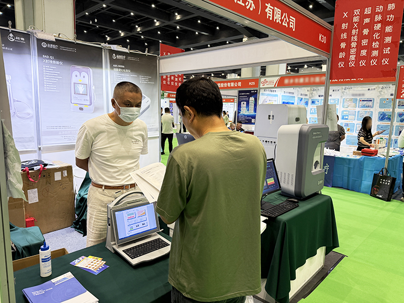 同时展出的骨密度仪系列,双能X射线骨密度仪采用双能X射线技术,能够评估骨质疏松风险,为临床诊断提供依据,该系列设备适用于各级医院、康复医院、体检中心等各类医疗机构,其特性为骨骼健康管理提供了解决方案。超声骨密度仪采用无辐射的超声检测技术,适用于儿童、孕妇等对辐射敏感的人群,在骨骼健康筛查场景中具有广泛适用性。其通过声波传播速度与宽带超声衰减等参数分析骨骼状况,为不同年龄段人群的骨骼健康管理提供多样化选择。在现场的产品演示中,专业技术人员为参观者详细讲解了设备的工作原理和特点,吸引了众多行业人士及合作伙伴驻足交流。