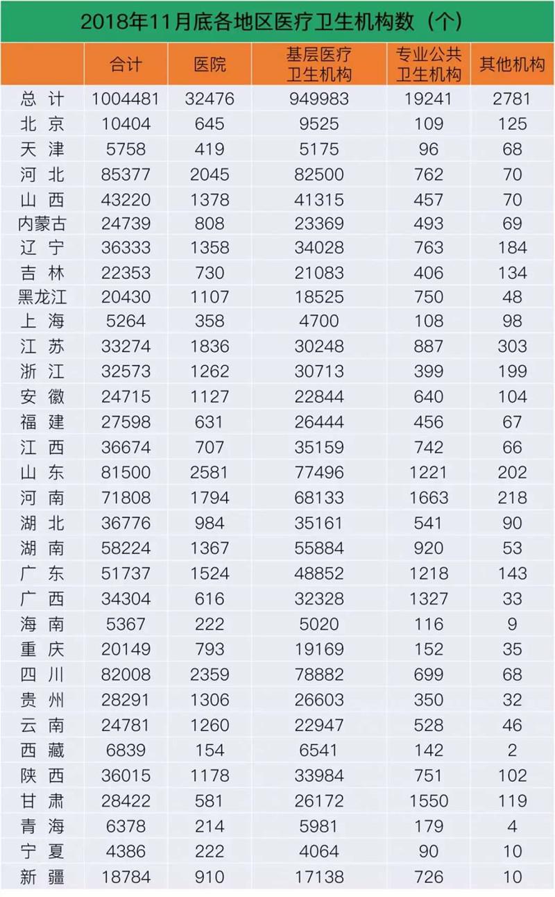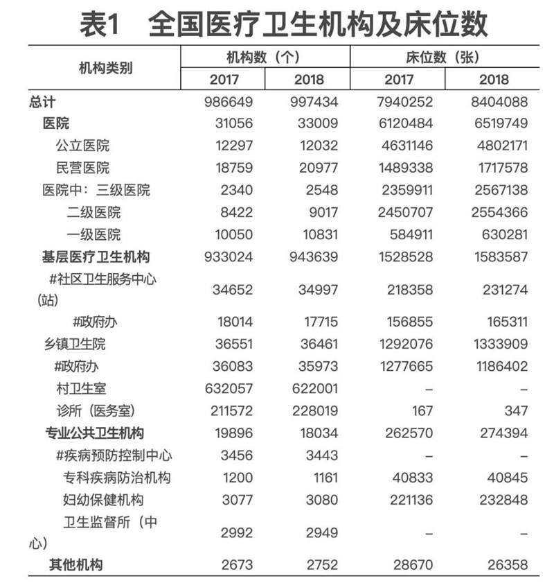5月22日,国家卫生健康委发布《2018年我国卫生健康事业发展统计公报》(下称《公报》)。数据显示,2018年末,全国医疗卫生机构总数达997434个,其中医院33009个。